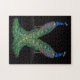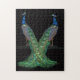 Esta é uma quebra-cabeça colorida e desafiadora com dois pavões e sua bela plumagem se sobrepondo.
