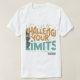O design de t-shirt apresenta a frase "Challenge Your Limits" em letras corajosas e multicoloridas, contra um fundo abstrato vibrante. As cores são brilhantes e atraentes, refletindo a mensagem enérgica e inspiradora da frase. O fundo do abstrato adiciona um elemento dinâmico e visualmente interessante ao design, fazer que ele se destaca da multidão.