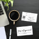 Fundo branco. Texto preto. Voltar: Personalize e adicione seu nome de empresa, número de telefone, email, endereço de site, código qr ao site ou conta de mídia social.