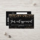 Fundo preto decorado com falso brilho dourado, faíscas. Voltar: Personalize e adicione seu nome de empresa, número de telefone, email, endereço de site, código qr ao site ou conta de mídia social.