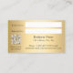 Um fundo de aparência dourada, texto preto. Na frente: Adicione seu desconto. Data válida. Voltar: Personalize e adicione seu nome de empresa, número de telefone, email, endereço de site, código qr ao site ou conta de mídia social.