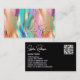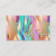 Um cartão de visita com um design holográfico multicolorido bonito com tons de ouro, rosa, roxo e azul.