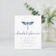 Convites de chá de panela de Dragonfly. Este convite é criado por uma libélula colorida com textura aquosa. Um belo design chá de panela perfeito para chás de verão, primavera e festas de chá. Personalize este design com as informações do chá de panela e qualquer mensagem personalizada que você queira incluir!
