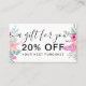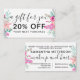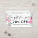 Cartão floral de desconto para brindes e uma tipografia moderna, com rosas pintados à mão, flores cor-de-rosa pastel e néon, cor-de-rosa, com folhas verdes e castanhas e galhos num arranjo de buquê botânico. Uma caligrafia elegante.