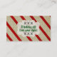 Um cartão de visita que caracteriza um vale ou um presente para um salão de beleza com um fundo bege de serapilheira com texto vermelho e verde festivo com tesouras/tesouras. Aperfeiçoe para cabeleireiros, hairstylists, armários do cabelo, cosmetologists, cosmetologia, salões de beleza e mais durante a estação do inverno do Natal do feriado!