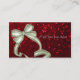 Um cartão de visita que caracteriza um vale ou um presente para um salão de beleza com um fundo sparkly, glittery, vermelho, e um arco grande, de prata que olhe como uma caixa atual. Aperfeiçoe para cabeleireiros, hairstylists, cosmetologists, cosmetologia, salões de beleza e mais!