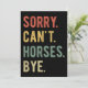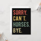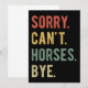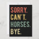 Design com efeito retroativo, perfeito para quem ama cavalos, pai de pônei, senhora de cavalo ou equestre! Desculpe. Não posso. Cavalos. Tchau. É uma citação divertida para um amante de cavalos, mãe de pônei, ou pai de cavalo para vestir todos os dias. Você é uma mãe de cavalo ou pai de cavalo orgulhosa? Acenda o seu estilo com esta arte de amante de cavalos! presente de excelente para uma mãe amante de cavalos louca, pai de fãs de pônei, amigo equestre, ou filha amante de cavalo ou filho.