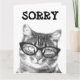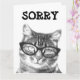 Desculpe saudar o cartão com o gato na imagem de óculos. Adicione sua própria mensagem de desculpas. Cartão grande com foto de animal.