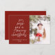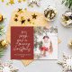 Envie desejos de Natal calorosos com este moderno cartão com fotos "Desejamos-lhe um Feliz Natal". Apresentando um fundo vermelho ousado, tipografia festiva da escrita e espaço para uma foto de família apreciada, este design elegante captura a alegria da estação. Perfeito para compartilhar com entes queridos perto e longe, este cartão personalizável adiciona um toque pessoal aos seus cartões de natal. Personalize facilmente com seu nome de família e o ano.