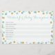 Nossa bolinhas de menta e chá de fraldas de ouro Desejos para Cartões de Bebê são uma atividade doce para se ter em um chá de fraldas. As cartas têm frases que os convidados podem preencher como "Espero que você sempre..." e "Espero que você aprenda a...". Você pode personalizar facilmente as cartas para usar o nome do bebê no título ou mudar as frases dos desejos antes de adicionar as cartas ao seu carrinho.