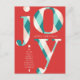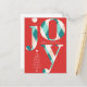 Esta corajosa e moderna design de natal irradia energia festiva com um fundo vermelho impressionante e a palavra "JOY" em grande e padronizada tipografia. O texto que o acompanha difunde desejos de feriados incríveis, fazer-o uma escolha perfeita para partilhar o espírito do Natal. Com uma mistura de elementos clássicos e contemporâneos, este cartão transmite uma mensagem de alegria, paz e aplausos para a temporada.