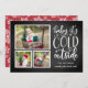 Cartão com fotos de feriado russo e caprichoso apresenta três fotos em um layout de colagem, com "bebê está frio lá fora" em tipografia branca, escrita à mão, em fundo de quadro. Personalize com seus nomes embaixo, e adicione uma foto adicional no fundo de um floco de neve vermelho e branco.