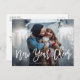Mande os desejos de Ano Novo para a família e os amigos. Este elegante design apresenta um roteiro de pincel branco e uma bela foto. O texto e as cores podem ser personalizados.