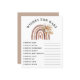 Adicione risos e brincadeiras ao seu Chá de fraldas do Arco-Íris Boho com nossos 'Desejos por Bebê | Jogo do Chá de fraldas Arco-Íris Boho". Uma maneira divertida de testar os desejos dos seus convidados para o novo bebê! Pegue a sua hoje e crie memórias inesquecíveis!