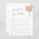 Celebre a mãe a ser com este doce e simples chá de fraldas moderno desejos de um cartão de conselho para bebês com desenho de aquarela de cor rosa pincelada e balões bronzeados.