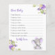 Cartões "Desejos para o Bebê" para um elefante roxo lavenderu, chá para bebês, aspersor, aniversário ou outra ocasião. Texto totalmente personalizável. O sinal de exibição correspondente também pode ser solicitado. Feita para combinar com nossa Coleção de Elefantes Lilac.