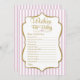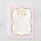 Um jogo de chá de fraldas, rosa e dourado, faz uma atividade de chá de fraldas pungente e divertida. Este jogo de chá de menina doce tem convidados a anotar desejos para o bebê que certamente fará uma lágrima de mamãe a ser derramada. Listras brancas e cor-de-rosa com sotaque brilhante dourado e texto dourado este jogo de chá de fraldas de Desejo por Bebê é um vencedor.