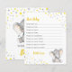 Cartões de "Desejos para o Bebê" para um chá de bebê temático de elefante amarelo e cinza, sprinkle, aniversário ou outra ocasião. O texto é totalmente personalizável. O letreiro de exposição correspondente também pode ser encomendado. Feito para combinar com nossa Coleção de Elefante Amarelo e Cinza.