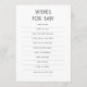 Simples tipografia Deseja um cartão de Chá de fraldas. Disponível digitalmente e impresso. Um jogo para seus convidados no seu chá de fraldas onde eles escrevem seus desejos para o seu bebê e um guardião para seu filho em anos futuros. Você pode personalizar facilmente todo o texto de acordo com suas necessidades.