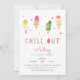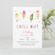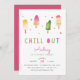 Adorável convite de festas para a sua pequena festa de aniversário de verão apresenta ilustrações de picolé de cor d'água em tons vibrantes de rosa e verde limão. Personalize com seus detalhes de festa de aniversário abaixo. Cartões invertidos a rosas sólidas.