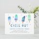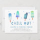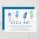 Adorável convite de festas para a festa de aniversário de verão do seu filho apresenta ilustrações de picolé de cor d'água em tons vibrantes de azul e turquesa, com "relaxar" embaixo de uma letra de corte branca. Personalize com seus detalhes de festa de aniversário abaixo. Cartões à volta de azul de lagoa sólida.