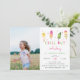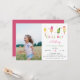 Adorável convite de festas para a sua pequena festa de aniversário de verão apresenta ilustrações de picolé de cor d'água em tons vibrantes de rosa e verde limão, com "relaxar" embaixo de uma letra de corte branca. Personalize com seus detalhes de festa de aniversário embaixo e adicione uma foto favorita da aniversariante no lado esquerdo. Cartões invertidos a rosas sólidas.