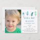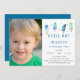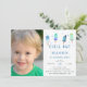 Adorável convite de festas para a sua pequena festa de aniversário de verão apresenta ilustrações de picolé de cor d'água em tons vibrantes de azul e verde, com "relaxar" embaixo de uma alface branca. Personalize com seus detalhes de festa de aniversário embaixo e adicione uma foto favorita do aniversariante no lado esquerdo. Cartões invertidos a azul sólido.