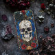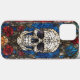 Capa de iPhone 13 Pro Max com desenho de janela de vitral de caveira gótica. © Dark Heart Desires. Um desenho em estilo de vitral de caveira gótica está nesta capa de telefone.