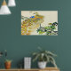 A Canvas de Pavão vem com um belo pavão em um galho de árvore e o pavão é amarelo e azul. esta é uma bela foto. nesta poster