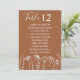 Terracotta Burnt Orange Wildflower número de mesa e cartões de assento com lista de convidados e simples design floral linear. O modelo está pronto para que você adicione o número da tabela e a lista de assentos dos nomes de convidados. Delicado tema botânico com borda de flores silvestres em arte branca e tipografia elegante escrita à mão. Por favor, navegue na minha coleção de desenhos de Wildflower para itens correspondentes.