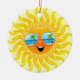 Desenhos animados engraçados e felizes de Sun com reflexão tropical da praia em óculos de sol!