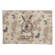 Uma representação marrom militar "subjugada" do escudo de um Maccabee e duas lanças sobre o fundo do camo do deserto. O escudo é enfeitado por um leão e o texto lendo "Yisrael" (Israel) no alfabeto paleohebraico. O texto hebraico moderno que lê "Maccabee" também aparece. Os Macabeus eram rebeldes judeus que libertaram Judeia do jugo do Império Seleúcio. Chanukkah não é apenas um festival de inverno-médio com velas e iguarias fritas, ela celebra uma vitória militar, e garante a liberdade religiosa, sobre o Império Seleúcio. Além disso, a revolta foi uma guerra civil envolvendo aqueles judeus que eram leais ao G-d e aqueles que tinham adotado o Hellenismo dos Seleucids.