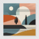 Uma paisagem abstrato de uma cena do deserto com linhas e formas em tons de marrom, laranja, turquesa, bege, bronzeado e preto.