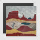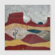 Uma paisagem abstrato com cores e texturas únicas mostrando uma cena do deserto com um sol azul ascensão e um cacto em tons de vermelho, cinza, bege e azul.
