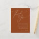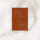 Este cartão de agradecimento de mesa de terracota do deserto caprichoso é perfeito para o seu casamento simples e rústico com tons terrosos ocidentais bege e terracota. A paleta de cores boho neutra e terrosa é vintage do sudoeste com um toque moderno e retrô. A escrita é uma caligrafia manuscrita minimalista delicada que é bastante elegante e romântica. O produto é editável e tem muito espaço em branco, então você pode adicionar seus próprios gráficos ou imagens se quiser personalizá-lo! Por favor, sinta-se à vontade para fazer qualquer pergunta sobre o design de qualquer produto; estamos felizes em ajudar!