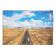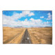Esta incrível foto do Getty Images apresenta uma vista aérea de jipes conduzindo em uma estrada vazia através da paisagem vulcânica do deserto, Tefia, Fuerteventura, Ilhas Canárias, Espanha.