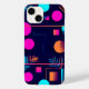 Arte abstrata vibrante e colorida com padrões geométricos, formas e folhas com um estilo contemporâneo em um fundo escuro, evocando uma estética visual moderna, dinâmica e criativa.