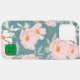 Belo floral gráfico, sem costura, em azul e rosa, com borda oftalmológica em verde.
