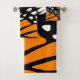 O conjunto de toalhas mostra um design de asa da borboleta preto, branco e laranja. Para obter informações sobre personalização, entre em contato com info@KBMD3signs.com