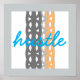 arte poster com abstrato gráfico de hustle com cinza de texto, cor de laranja, decor de parede turquesa. Direitos autorais originais da obra de arte Ann Powell todos os direitos reservados.