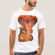 "Um design de camiseta intenso e vívido com uma cobra terrivelmente realista. A cobra é representada com olhos ameaçadores, presas afiadas e escalas intrincadas, enroladas e prontas para atacar. A design enfatiza a natureza perigosa e cobra, com iluminação e efeitos sombra dramáticos para melhorar sua aparência estranha. Perfeito para fãs de designs ousados e ousados, esta camisa é ideal para plataformas impressão a pedido como a Zazzle, criando um impacto visual impressionante e memorável."