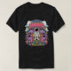 Esta design de camiseta única apresenta uma cena colorida e psicodélica do jardim, com um homem espacial no centro. O jardim está cheio de vários cogumelos e flores, criando um padrão vibrante e atraente para os olhos.