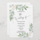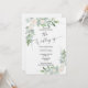 Este design de aquarela é completamente editável e pronto para você inserir suas informações. Os florais são uma cor branca escamoteada com madeira e samambaias de eucalipto. Personalize a forma do papel, o tipo de papel e todo o texto.