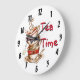 Desenho original de lápis a cores de Sandra Gale, com quatro xícaras decorativas de chá, empilhadas dentro de um disco com fita solteiro de pérolas e colher. design de relógio de excelente para uma cozinha ou para Mães ou avós que gostam de chá e xícaras de chá. Também faz um presente maravilhoso!