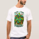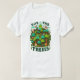 Um design de t-shirt criativa com a mensagem Save the Trees em negrito, artístico. A design apresenta um símbolo de árvore com raízes se espalhando pela camisa, enfatizando a importância de preservar a natureza.