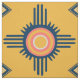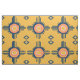 Desenho do Sol Zuni, goldenrod azul-marinho laranja, Virginia Vivier, arte popular Vagabond, Sol Zuni do Sudoeste, arte popular do Sudoeste, tecido de arte popular Zuni, tecido étnico, roupa de cama, capas de almofadas, almofadas, vestuário.