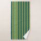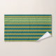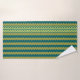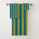 O conjunto de toalhas mostra o design chevron amarelo-esverdeado em um fundo permutável verde escuro.As consultas para personalização estão em contato com bea@KBMD3signs.com