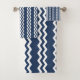 O conjunto de toalhas mostra design de zag azul escuro. Para obter informações sobre personalização, entre em contato com bea@KBMD3signs.com