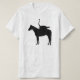 Um design incomum do t-shirt que caracteriza uma silhueta de uma avestruz que monta um cavalo. Presente ideal para aqueles com um gosto para o surreal.