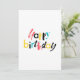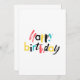 Design gráfico moderno, lúdico e colorido de um ditado "Parabéns" em cores vermelha, amarela, azul e preta. Tipografia criativa.